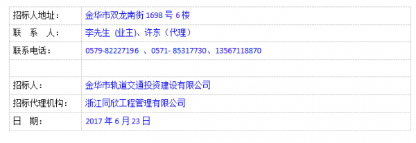 金華-義烏-東陽(yáng)市域軌道交通工程(項(xiàng)目名稱)經(jīng)浙江省發(fā)展和改革委員會(huì)《省發(fā)展改革委關(guān)于金華-義烏-東陽(yáng)市域軌道交通工程初步設(shè)計(jì)的批復(fù)》(浙發(fā)改設(shè)計(jì)〔2017〕20號(hào))文同意建設(shè),并已列為浙江省重點(diǎn)建設(shè)項(xiàng)目。項(xiàng)目建設(shè)規(guī)模本項(xiàng)目由金華—義烏段和義烏—東陽(yáng)(橫店)兩條線路組成,兩線在秦塘站呈雙島四線同站臺(tái)換乘,同時(shí)具備金華-義烏-東陽(yáng)方向的貫通運(yùn)營(yíng)條件。其中,金華—義烏段線路起于金華市金華站,經(jīng)由江北二七區(qū)塊、江南核心區(qū)、金東區(qū)、金華南站、金義新區(qū)至義烏主城區(qū)秦塘,線路預(yù)留近期向東北延伸至蘇溪的條件;義烏-東陽(yáng)(橫店)線路起于義烏高鐵站,經(jīng)由義烏主城區(qū)-秦塘-國(guó)際商貿(mào)城-東陽(yáng)主城區(qū)-羅屏鄉(xiāng)至橫店客運(yùn)中心,線路預(yù)留近期向北延伸至浦江的條件。線路全長(zhǎng)107.166公里,其中地下線 26.22km,過(guò)渡段長(zhǎng)約 4.365km,高架線長(zhǎng)約 74.12km,山嶺隧道長(zhǎng) 2.465km,共設(shè)站 31 座(秦塘站計(jì)為 2 座),其中地下車站 13 座(秦塘站計(jì)為 2 座),設(shè)一段三場(chǎng),建設(shè)地址位于金華地區(qū)(含金華市婺城區(qū)、金東區(qū)、義烏市、東陽(yáng)市),計(jì)劃于2021年建成。項(xiàng)目業(yè)主為金華市軌道交通投資建設(shè)有限公司,資金來(lái)源為政府投資和自籌,出資比例為(國(guó)有資金或財(cái)政資金占比)34.6%。項(xiàng)目已具備招標(biāo)條件,招標(biāo)人為金華市軌道交通投資建設(shè)有限公司(委托代理機(jī)構(gòu)為浙江同欣工程管理有限公司),現(xiàn)對(duì)該項(xiàng)目的盾構(gòu)管片01標(biāo)段采購(gòu)進(jìn)行公開招標(biāo)。