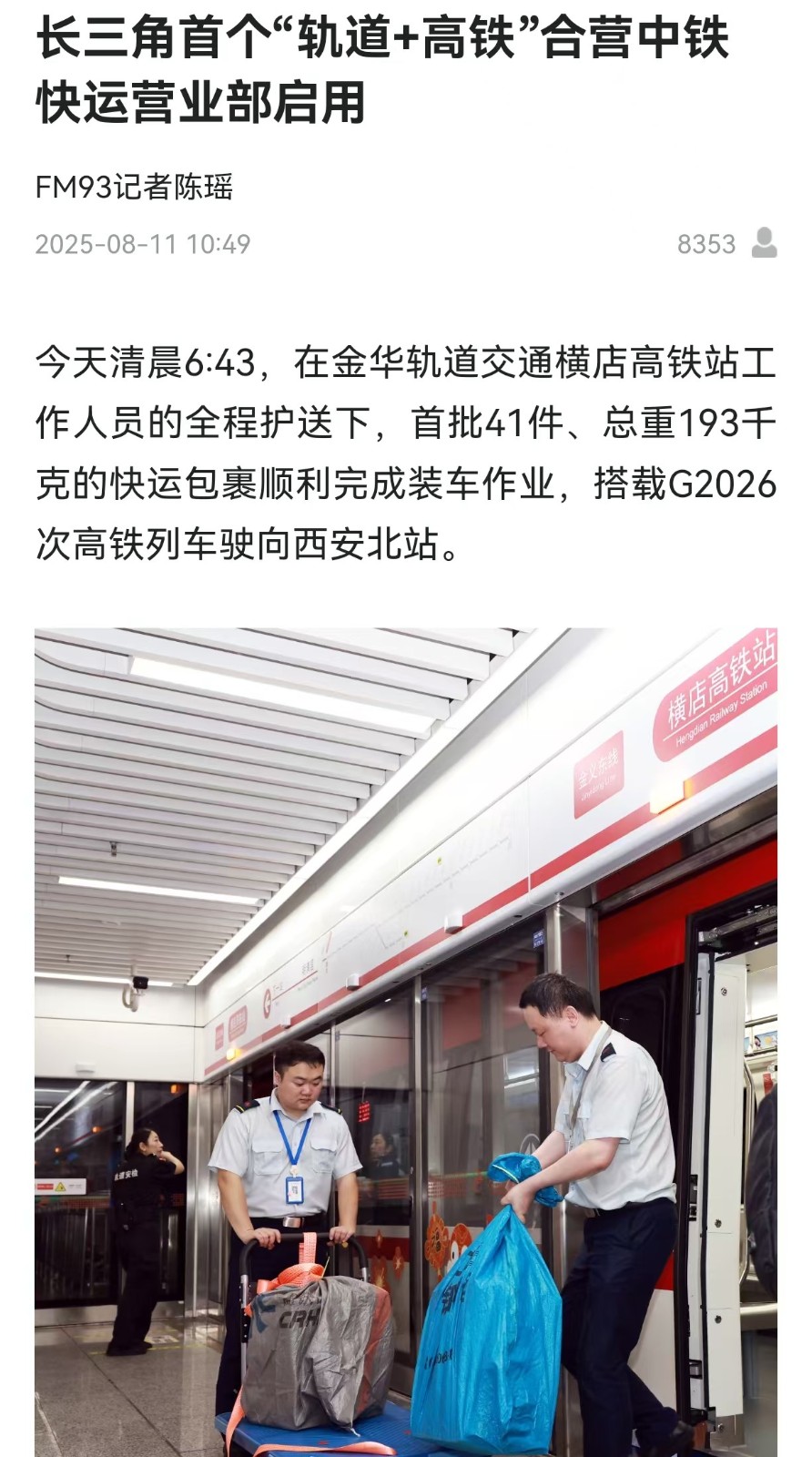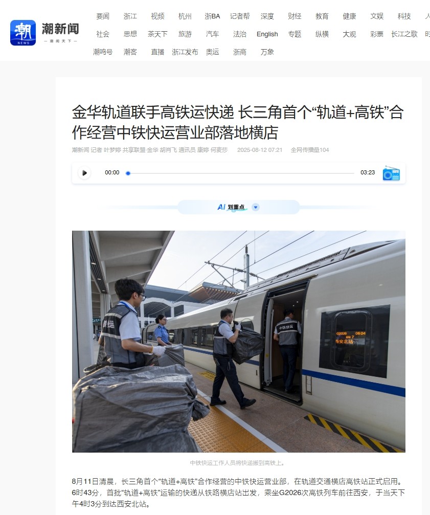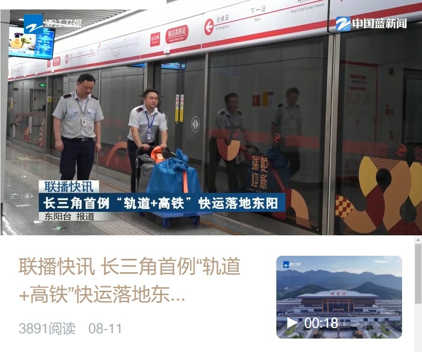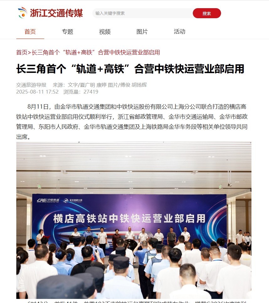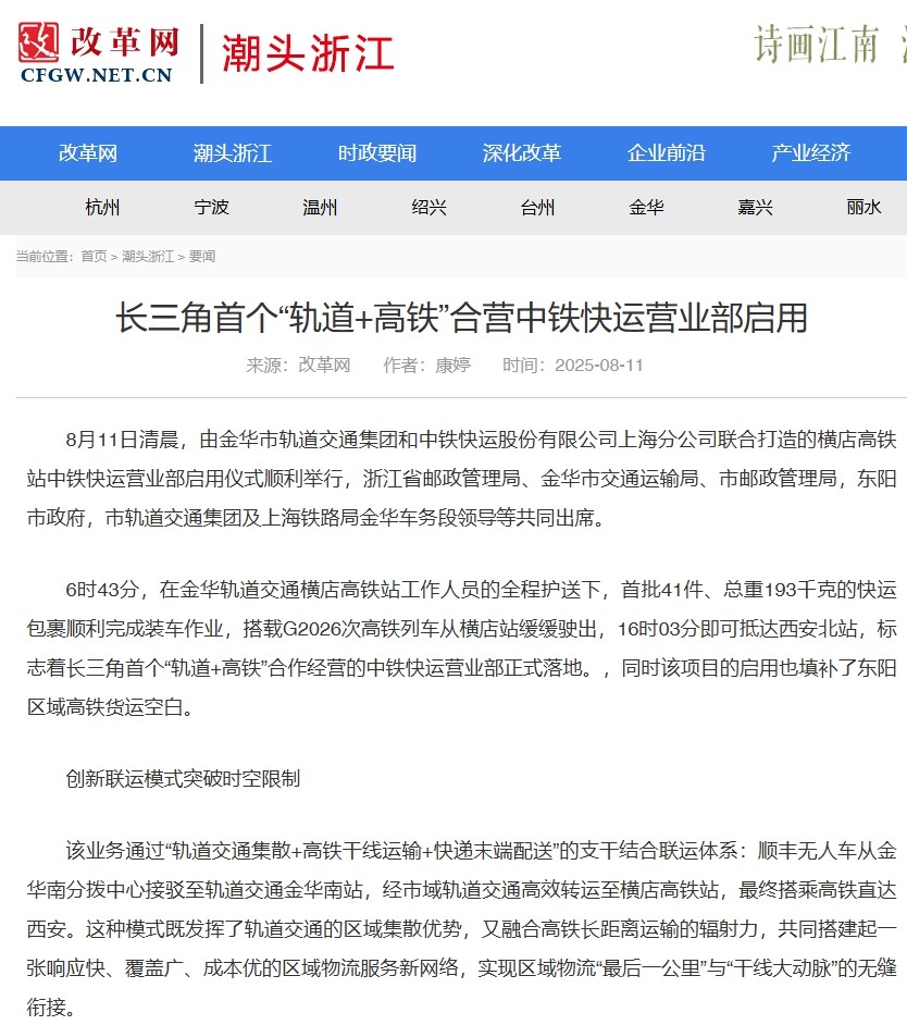 媒體關(guān)注 | 長(zhǎng)三角首個(gè)“軌道+高鐵”合營(yíng)中鐵快運(yùn)營(yíng)業(yè)部啟用獲主流媒體報(bào)道