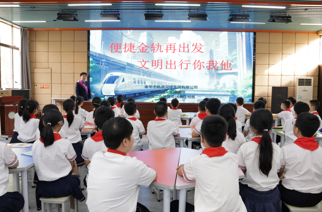 為進(jìn)一步宣傳普及軌道交通乘車知識,增強學(xué)生群體的安全意識,近期,金華軌道交通工作人員走進(jìn)東陽橫店二小教育集團(tuán)荊江校區(qū),開展“便捷金軌再出發(fā),文明出行你我他”安全宣講活動。